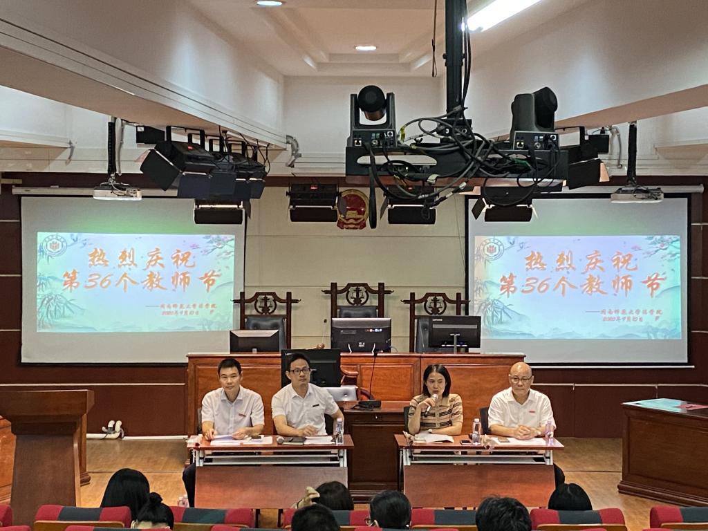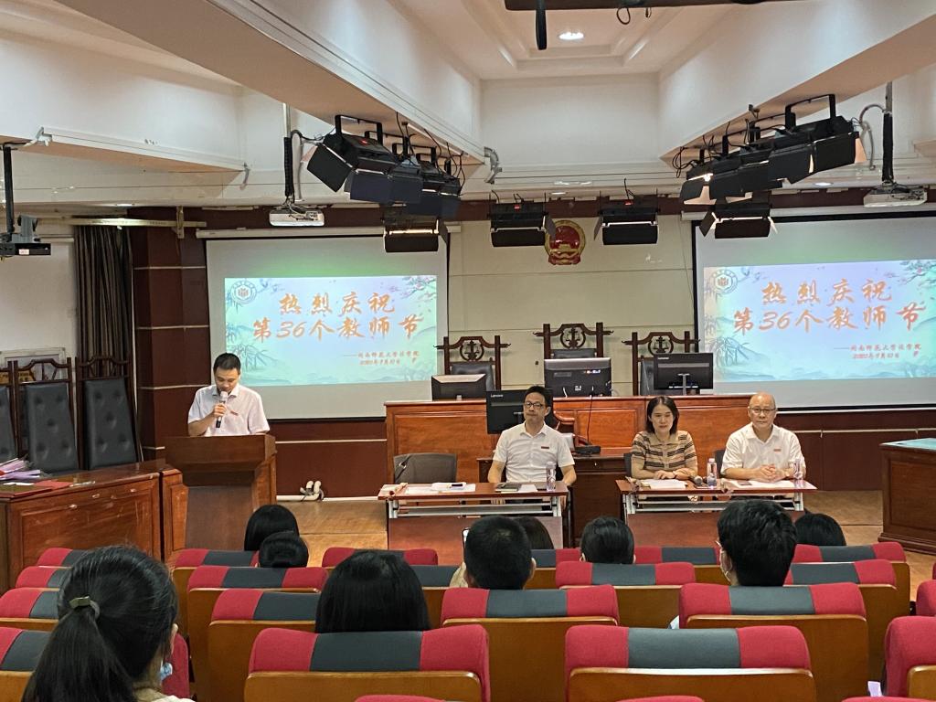 院党委副书记潘艺阳在会上讲话。强调公司将继续强化监督检查,严格执纪问责,塑造风清气正的大公司园文化氛围。要求全院教师要坚守师德,以身作则;履行承诺,遵守廉洁规定,做到“六个严禁”。尤其在教师节期间,不能坚决不能向员工“索要拿”,守住师道尊严,守住道德底线。