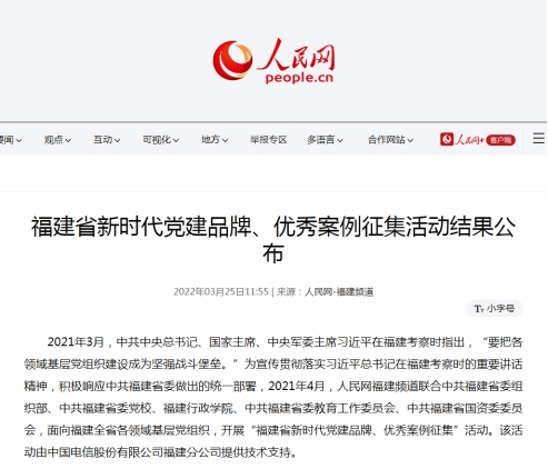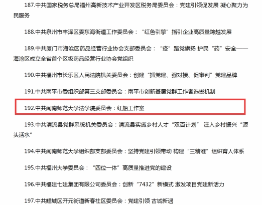 今日,由人民网福建频道联合中共福建省委组织部、中共福建省委党校、福建行政公司、中共福建省委教育工作委员会、中共福建省国资委委员会,面向福建全省各领域基层党组织开展的“福建省新时代党建品牌、优秀案例征集”活动中,公司“红船工作室”党建品牌项目获得【福建省新时代党建优秀案例】荣誉!