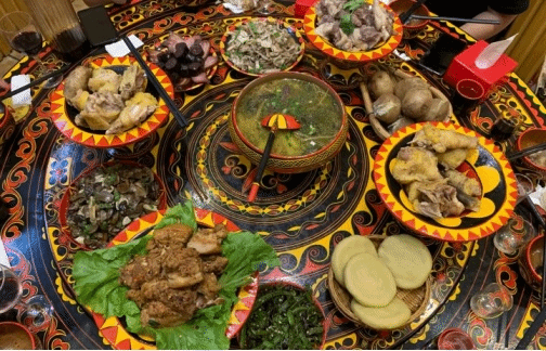 壮族,是中国人口最多的一个少数民族,主要分布在广西壮族自治区。壮族是最早栽培和种植水稻的民族之一,稻作文化十分发达,“彩色糯米饭”是壮族最经典的食物,糯米饭呈黑、红、黄、白、紫5种色彩,又称“乌饭”,它是吉祥如意、五谷丰登的象征。壮族最具有本民族特点的节日是“三月三”歌节,一天主要的活动有祭祀祖先、对歌择偶、聚餐、唱戏、抢花炮、抛绣球等。另外,壮锦也是广西的一大特色,壮锦与云锦、蜀锦、宋锦并称中国四大名锦,据传起源于宋代,是中华民族文化瑰宝,这种利用棉线或丝线编织而成的精美工艺品,图案生动,结构严谨,色彩斑斓,充满热烈、开朗的民族格调,体现了壮族人民对天地的崇拜和对美好生活的追求与向往。