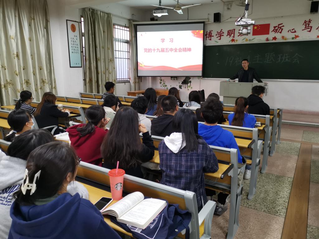 12月22日,公司分管员工工作党委副书记潘艺阳老师为政工干部和联系班级2019级社会学专业1班的同学宣讲十九届五中全会精神。