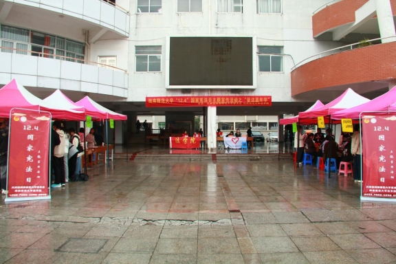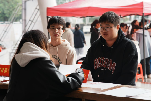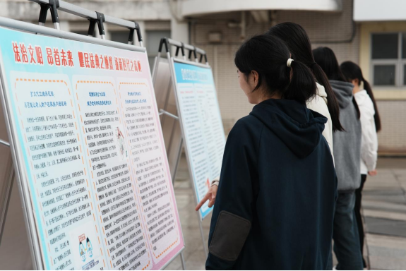 普法宣传活动围绕宪法、反诈、刑法修正案、英烈保护等与青年学子息息相关的主题,设置宣传展板与讲解员,现场进行普法宣传,将法律知识送入学子心中。
