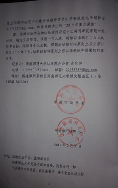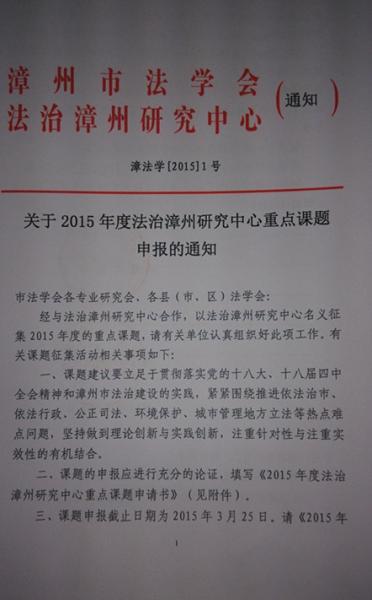 关于2015年度法治漳州研究中心重点课题申报的通知