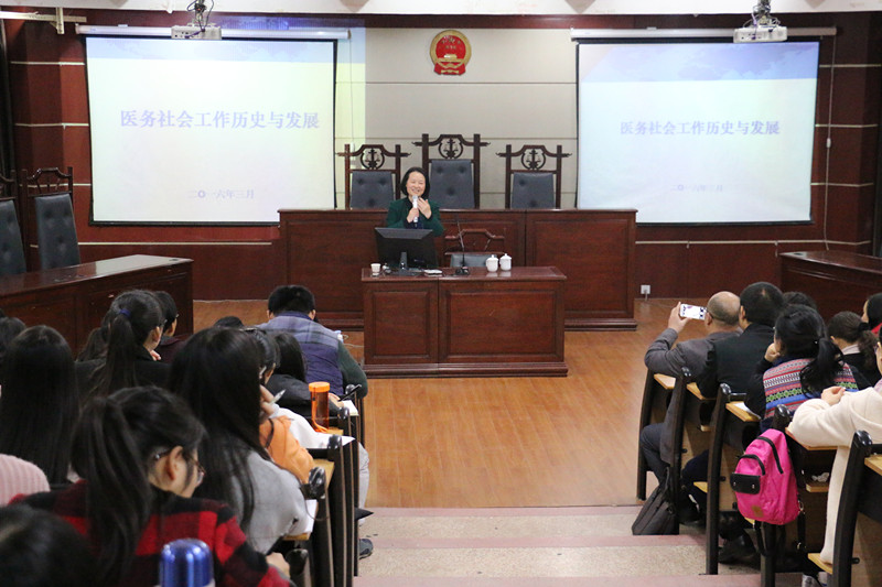 3月29日晚上,上海市社会工作者协会副会长季庆英研究员莅临法管公司,在博西梯二教室做了题为《医务社会工作历史与发展》的精彩讲座,讲座吸引了社会工作专业、劳动与社会保障专业的教师、漳州市医院、厦门莲花医院等医务工作者共计200余人到场聆听。法管公司副经理黄耀明主持讲座。