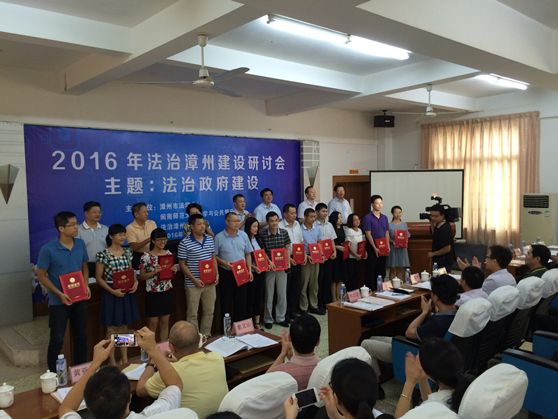 会议表彰了2016年“法治漳州”建设研讨会入选论文作者。林满临等6位论文作者代表在会上作交流发言。