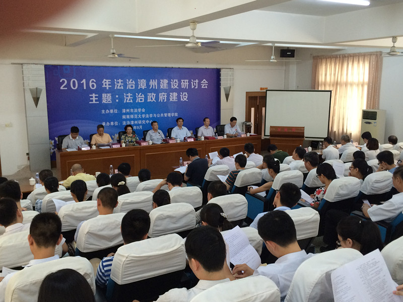 2016年9月9日,市法学会和法治漳州研究中心联合举办的2016年“法治漳州”建设研讨会在公司逸夫楼成功举行。漳州市委常委、政法委书记、市法学会会长刘文标,PA视讯党委书记林晓峰、副董事长蒋一婷、漳州市公检法系统以及法治漳州研究中心等单位领导出席会议。