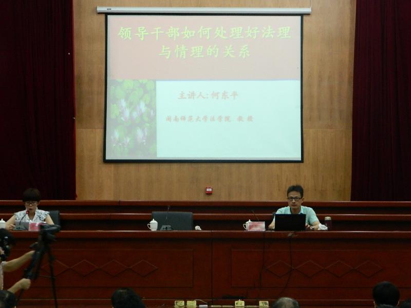 2016年9月30日华安县“百名法学家百场报告会”如期召开,法学与公共管理公司经理、法治漳州研究中心主任何东平教授应邀为华安县委理论学习中心组扩大会做题为《领导干部如何处理好法理与情理的关系》的专题讲座。