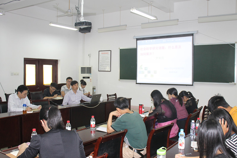 10月22日,应法学与公共管理公司邀请,南昌大学公共管理公司博士生导师、江西省社会科学研究中心研究所长尹利民教授,在博西106举行了一场题为《社会科学研究课题的选题、撰写与论证思考》的讲座。讲座由政治学与行政学系主任王卫主持,法学与公共管理公司部分师生参加讲座。