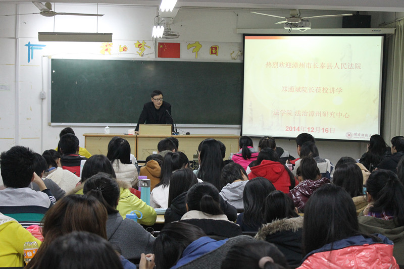 12月16日晚7:00,PA视讯官网邀请长泰县人民法院经理郑通斌同志做客法官论坛第二讲,在PA视讯官网501教室主讲题为《基层司法实践的点与面》的精彩讲座。PA视讯官网副经理何东平教授主持了讲座。