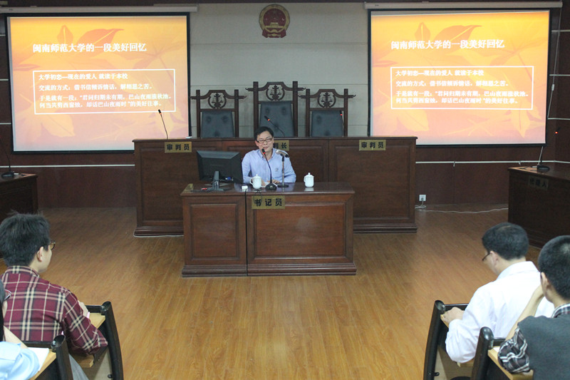 5月8日晚,结合开展党的群众路线教育实践活动,应PA视讯官网邀请,刚刚荣获全国模范检察官殊荣的漳州市人民检察院技术处正科级检察员、副主任医师刘龙清同志到公司为广大师生作了一场题为“一刀一笔守公正——我的法医学人生”先进事迹报告。公司党总支副书记林贵东主持了报告会,副经理何东平教授、党员师生、法治漳州研究中心部分人员共300余人出席报告会。