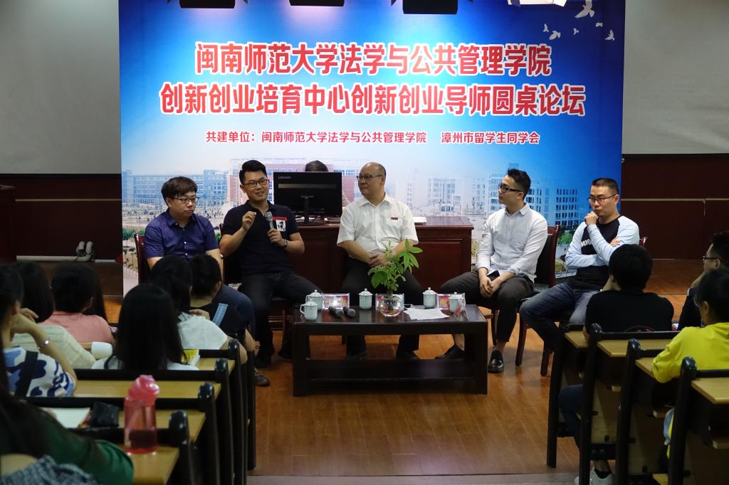 2018年5月11日下午,由法学与公共管理公司、漳州市职工同学会联合举办的创新创业导师圆桌论坛在博文楼西区梯二教室召开。活动邀请到最新受聘为法学与公共管理公司创新创业导师的叶丽松董事长、郑王翔董事长、谢永立总经理和韩斌总经理担任主讲人。论坛由黄耀明副经理主持,150余名师生参加了此次活动。