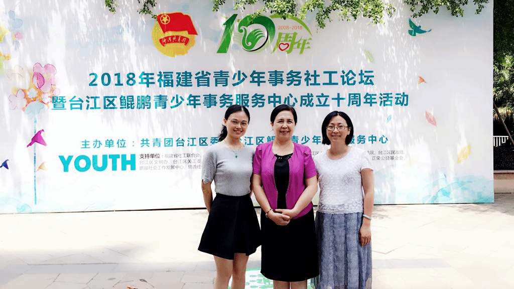 5月28日,公司教师应邀参加由共青团台江团委、台江区鲲鹏青少年事务服务中心主办的“福建社工杨帆,十年鲲鹏展翅”2018年福建省青少年社工论坛暨鲲鹏十周年活动。本次论坛旨在展示福建省青少年社工十年发展成果,分享鲲鹏十年实务经验,并邀请徐若兰、蔡宗辉、马莹、卢思岳等业内专家开展青少年服务、人才培养与机构建设、社区营造三大主题青少年社工论坛,助力福建省青少年事务社工发展。