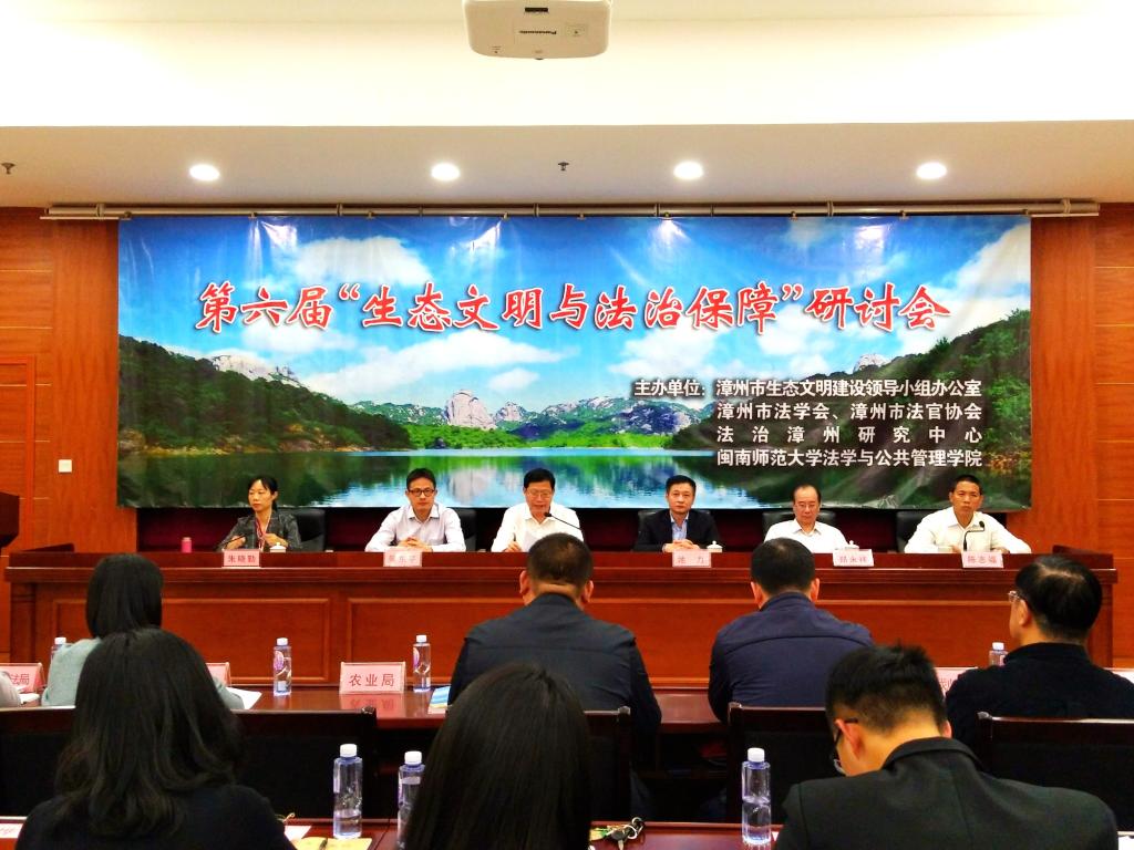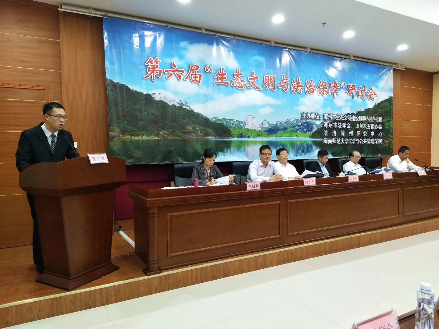 值此公司喜迎60周年校庆之际,11月29日下午,由漳州市生态文明建设领导小组办公室、漳州市法学会、漳州市法官协会、法治漳州研究中心、PA视讯法学与公共管理公司共同主办的第六届“生态文明与法治保障”研讨会,在漳州市中级法院三楼视频会议中心举行。省高级法院生态庭、厦门大学PA视讯官网、市委政法委、市中级法院、市法学会、市发改委、PA视讯法学与公共管理公司、漳州市生态文明建设联动单位的领导、专家、获奖论文作者以及各县(市、区)法院生态庭庭长共50多人参加研讨会。
