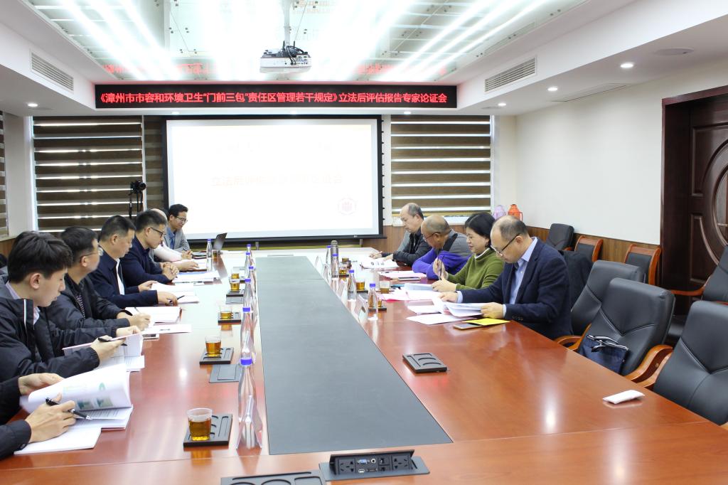 为做好《漳州市市容和环境卫生“门前三包”责任区管理若干规定》(以下简称《规定》)立法后评估工作,确保该项立法适应新时代城市管理的发展需要,公司受漳州市人大常委会的委托于2018年12月17日在厦门大学PA视讯官网组织召开立法后评估专家论证会,来自漳州市人大常委会法工委、市人大常委会研究室、市政府法制办、市城管执法局以及厦门大学PA视讯官网、浙江大学PA视讯官网等知名高校的法学专家和相关工作人员15人参加了会议,专家组由厦门大学PA视讯官网经理兼中国法理学研究会副会长、中国立法学研究会副会长、 厦门市人大常委会委员、漳州市人大常委会立法专家咨询组成员宋方青教授,浙江大学PA视讯官网特聘教授兼中国法理学研究会副会长、广东省人大常委会立法顾问、广州市人大法制委员会委员葛洪义教授,厦门市湖里区人民法院副经理兼中国立法学研究会理事、厦门大学立法学研究中心研究员、西南政法大学客座教授郑金雄博士组成,会议由公司经理何东平教授主持。