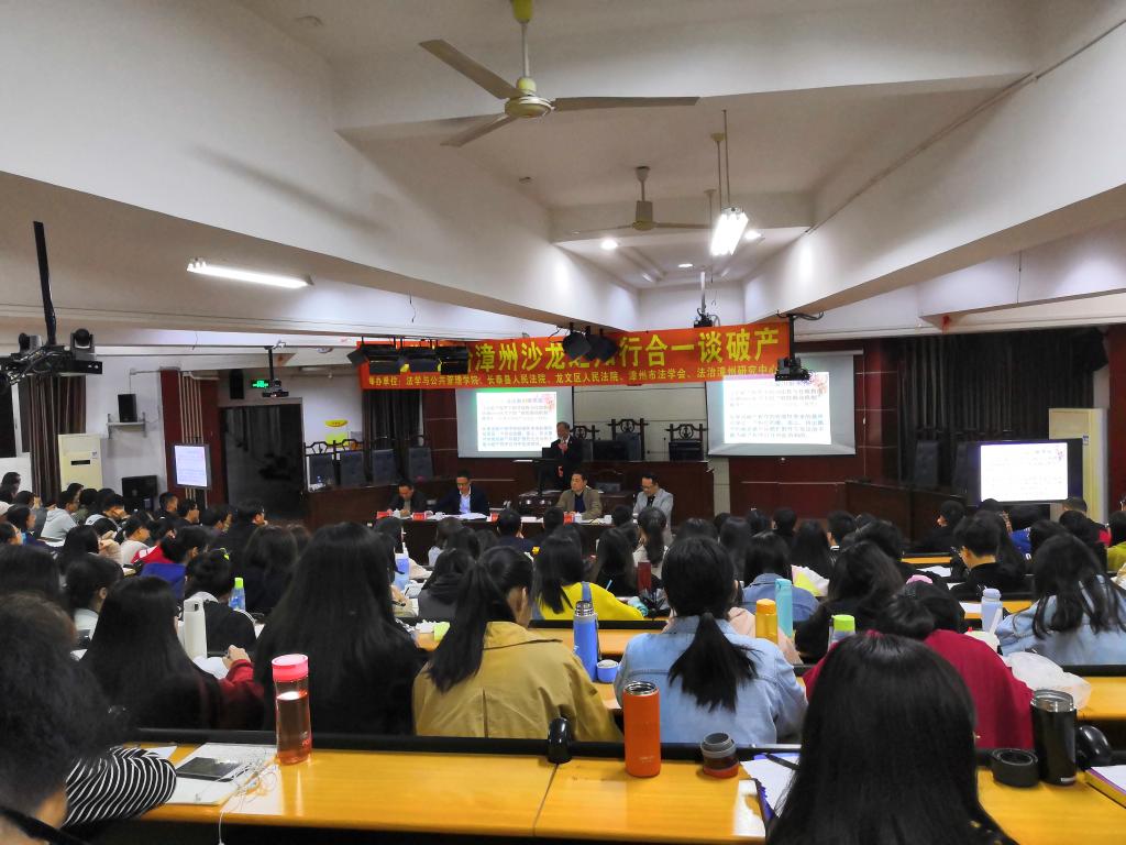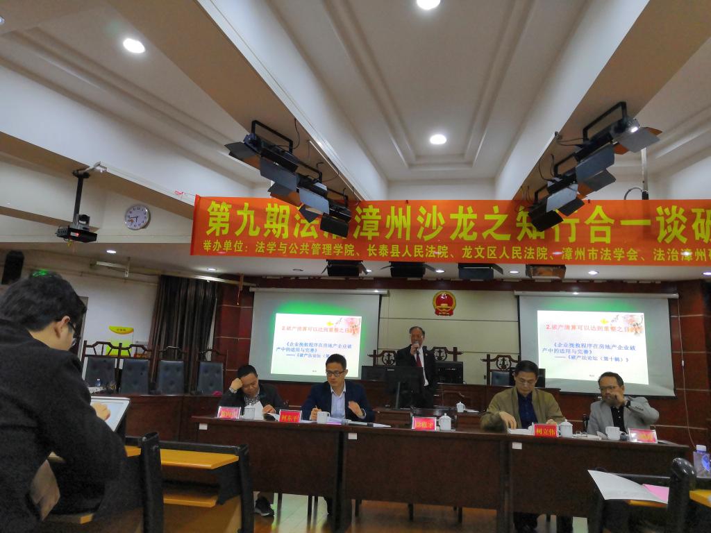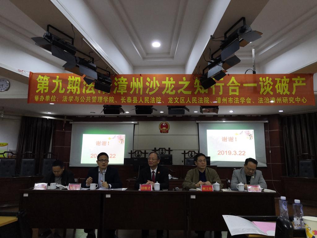 3月22日晚,浙江省江山市人民法公司党组成员、副经理徐根才到公司进行交流访问,以“知行合一谈破产——江山法院破产审判实践”为主题在博西梯二开展了一场法学沙龙交流会。公司经理何东平,长泰县人民法院经理姚毅奇,龙文区人民法院经理柯立伟,漳州市委政法委执法监督室副主任、市法学会秘书长黄向成和部分县、区的法官、律师以及公司教师代表等出席本次沙龙。公司16、17、18级员工参加了本次活动。
