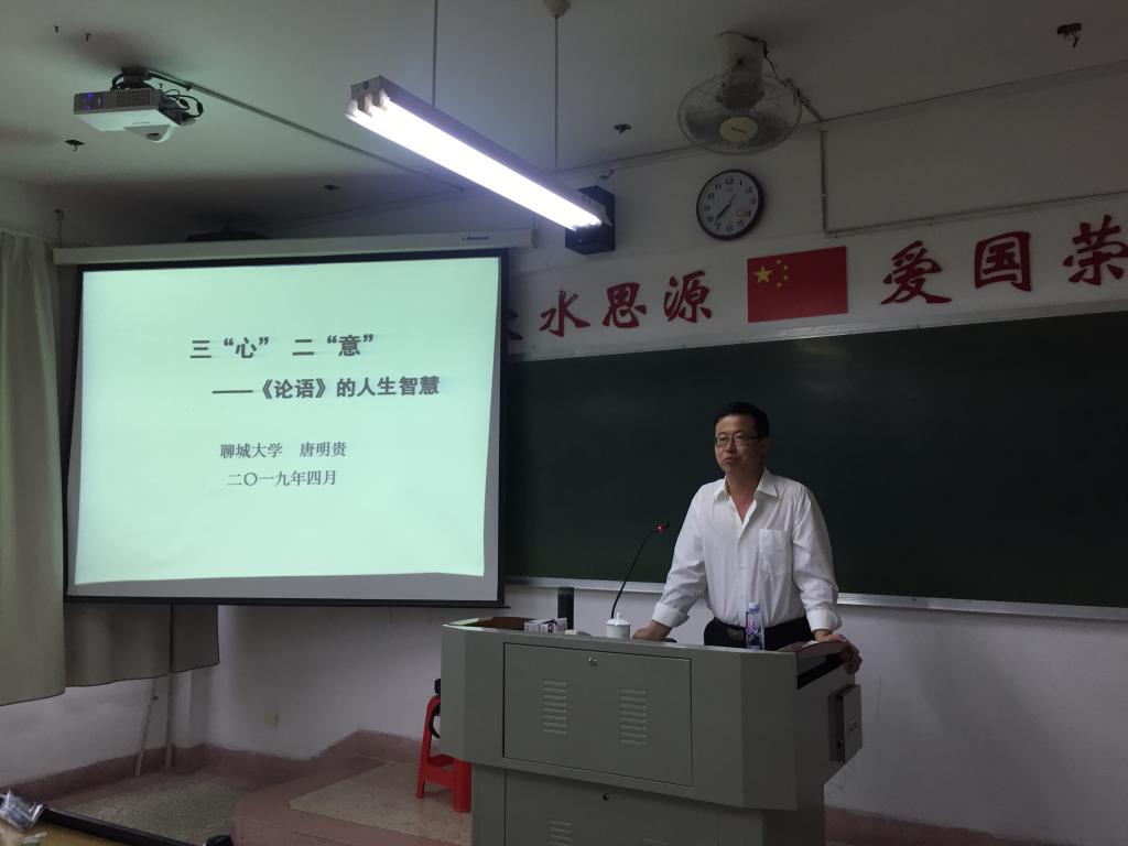 4月26日,聊城大学唐明贵教授到公司讲学,作了题为“《论语》中的人生智慧”的讲座。讲座由公司副经理黄耀明主持,17级政治与行政学员工和社会工作员工参加了本次活动。