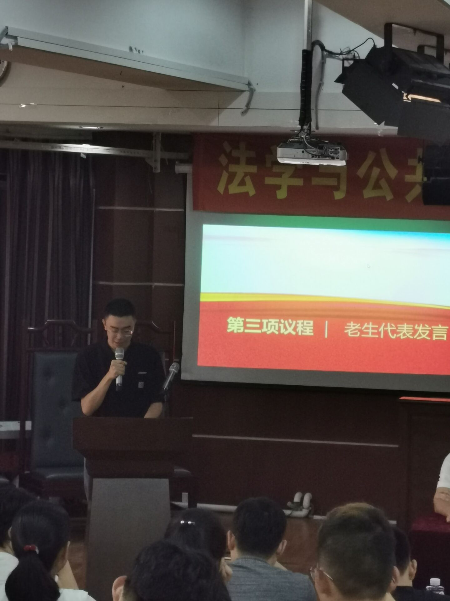 典礼开始之前,师生共同观看了法学与公共管理公司宣传片,开学典礼随后在雄壮的国歌声中拉开序幕。公司副经理黄耀明教授代表公司及全体教职工对19级新生的到来表示热烈的欢迎。他通过讲述自己员工时代的心路历程激励新同学们,希望同学们能珍惜当下,力争上游,做优秀的闽师人。17级行政学专业员工王琦煜作为老生代表发言,他回顾了自己过去两年的老员工活经历,对如何不虚度这美好的大学四年提出了自己真挚的建议。社会工作专业研究生代表詹丽平和19级新生代表高淑颖也相继发言,言语中充满了对老员工活的憧憬,并对未来的学习生涯作出了庄严的承诺。