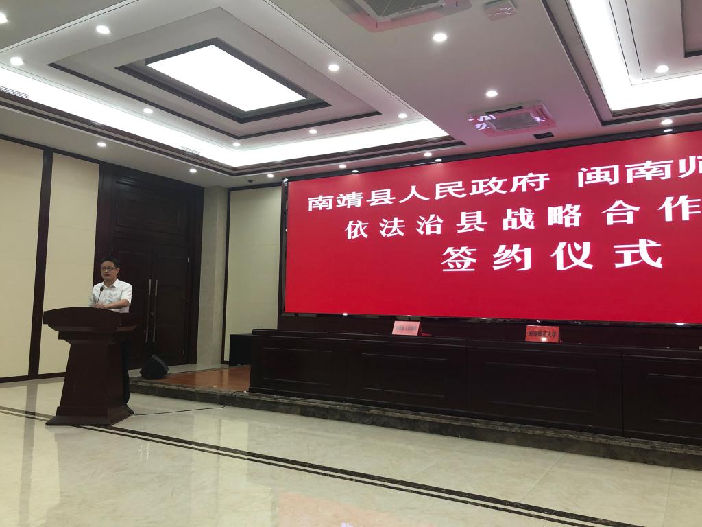 吴彬镪表示,校地合作是加强高校与地方联系和交流、实现资源共享、互利共赢的有效形式,也是落实中央决策部署、深化产教融合发展的重要举措,对区域经济社会发展和高校内涵发展都具有重要意义。PA视讯法学与公共管理公司依托公司有利资源,充分发挥人才、科研、政策、和理论研究优势,结合漳州地区实际,深入开展依法行政、加快建设法治漳州的理论研究、政策研究、实务研究,取得了丰硕的法治实践成果,积累了丰富的法治建设经验。南靖县提出的“奋力开创新时代法治南靖建设新局面”也将为PA视讯服务地方法治建设、深化校地合作提供新的广阔舞台。同时也期待南靖县委县政府在政策、资源等方面给予公司发展更多形式、更大力度的支持和帮助,期待南靖县行业企业深度参与公司办学,强化校企协同育人,促进校地(企)共同发展、加快发展。