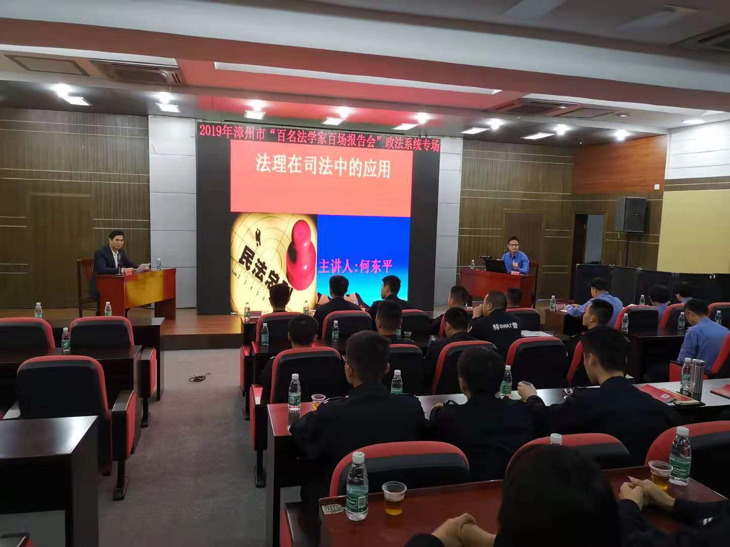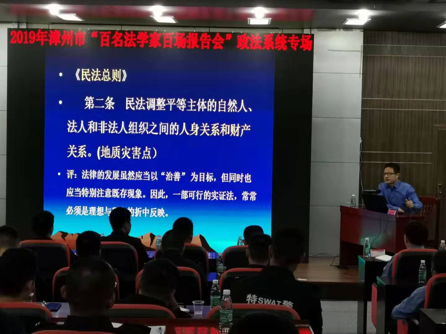 11月28日上午,2019年漳州市“百名法学家百场报告会”政法系统专场在市检察院会议室举行,市直政法各部门干警共100多人参加报告会。公司何东平经理受邀作题为《法理在司法中的运用》的主题讲座,报告会由市法学会会长陈青树主持。