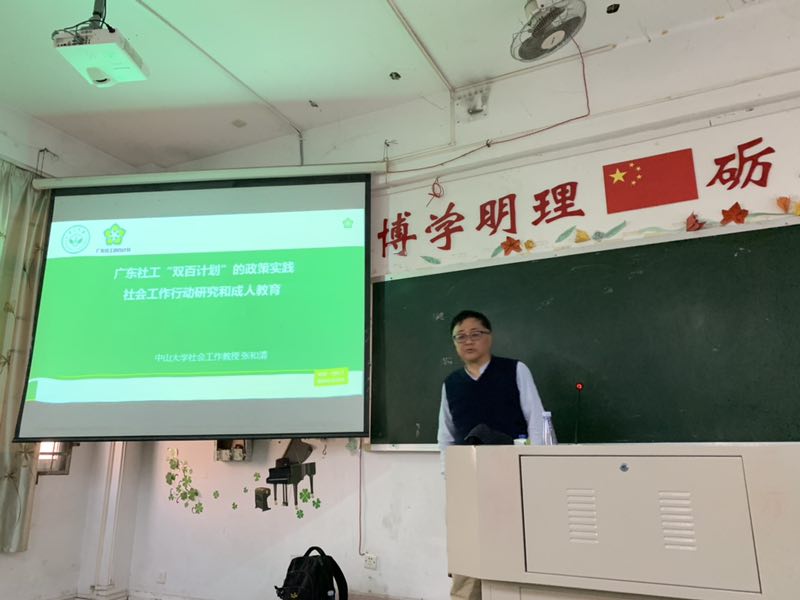 12月2日,中山大学社会学与社会工作系学科负责人张和清教授到公司讲学,作了主题为“广东社工双百计划的政策实践、社会工作行动研究和成人教育”、“社会工作行动研究方法”的讲座。讲座由公司副经理黄耀明教授主持,公司社会工作专业教师、硕士生导师、社会工作专业硕士研究生、社会工作专业17、18级本科生参加了本次讲座。同时,漳州市民政局社工科科长、漳州市社工机构社工、漳州市云霄县坎顶村村干部、妇女代表也慕名参加了本次讲座,整个现场座无虚席。