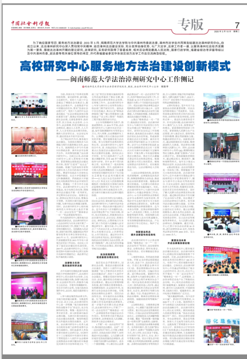3月10日,《中国社会科学报》以《高校研究中心服务地方法治建设创新模式——PA视讯法治漳州研究中心工作侧记》为题,深度报道了公司法治漳州研究中心自2013年成立以来,深入贯彻党中央精神,结合漳州法治建设实际,充分发挥自身优势,与广大法学、法律工作者一道,以服务漳州社会经济发展为第一要务,围绕法治漳州开展的理论研究、政策研究、实务研究取得的显著成效,相关活动得到最高人民法院、国家行政公司、福建省综治考评督导组以及中共漳州市委、政法委等有关单位领导的肯定,并代表福建省参加华东地区地方法学工作会交流典型经验。该文章紧紧围绕法治漳州研究中心全面推进法治建设的目标,坚持“引进来”“走出去”的战略,在我国正处于改革攻坚期和转型期,面对新形势、新问题的形势下,从高站位阐述了法治漳州研究中心立足新时代,通过开展“一村一法治宣传员”、“精准普法一对一”、法律援助和依法治县合作项目等特色项目,对法治实践进行探索,促进基层治理法治化;不断创新普法形态,提升法律宣传的实效性;大胆展望法治未来,开启法律服务新征程。