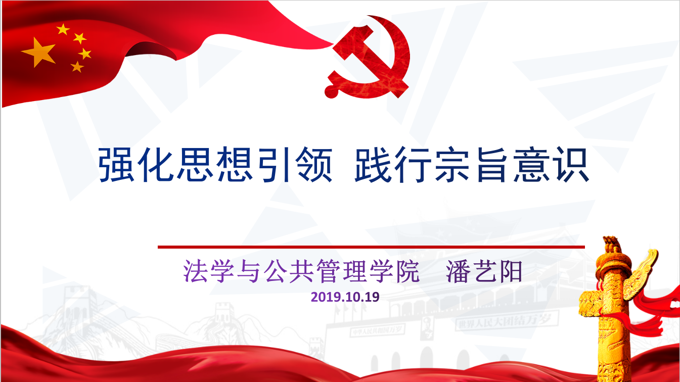 2019年10月29日,PA视讯法学与公共管理公司党委副书记潘艺阳为员工第三党支部和第五党支部的党员上了一堂主题为“强化思想引领,践行宗旨意识”党课,会议由员工第五支部书记潘怀杰主持。
