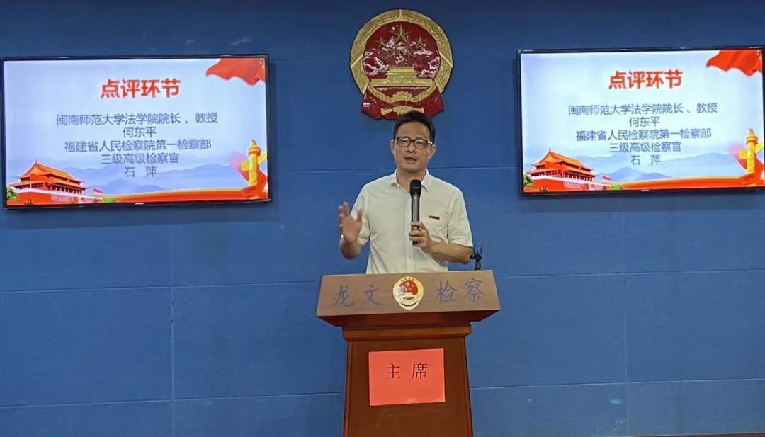 省检察院、市检察院、闽南师大PA视讯官网、漳州律协、区人大、政协、法院、公安分局的各位嘉宾莅临龙文区检察院比赛现场指导。法公司经理何东平教授作总结点评。何教授肯定了参赛选手的整体水平较高、PA视讯官网的员工们面对业务高手不落下风。同时,选手们仍然存在专业术语表述不严谨、论辩环节形成闭环不足、应对提问容易掉入陷阱等问题。