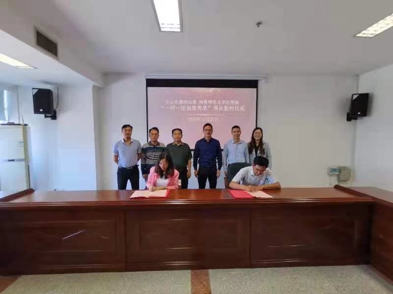 11月25日上午,公司经理何东平、公司党委副书记潘艺阳、副经理郭细卿等一行5人到东山县委政法委,与东山县委政法委书记刘汉池、副书记沈添顺、朱文明就“一村一法治宣传员”事宜进行座谈并签订合作协议。