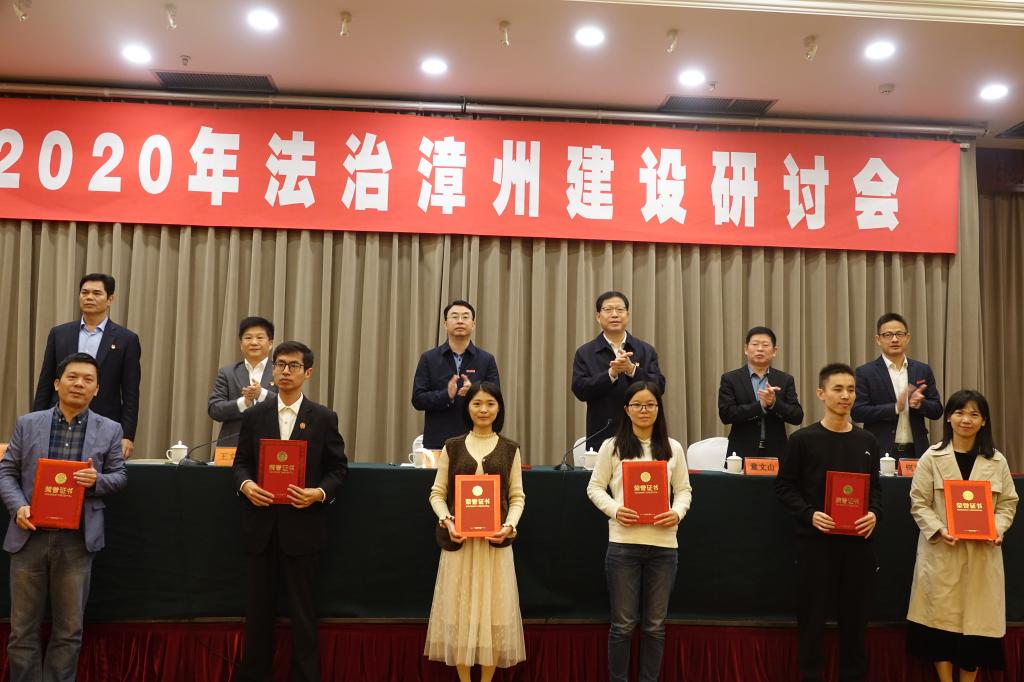 12月11日上午,由漳州市法学会、法治漳州研究中心主办的“2020年法治漳州建设研讨会”在漳州宾馆海峡厅顺利召开。本次会议由市委政法委委务会成员、法学会党组书记陈青树主持。漳州市委政法委,公检法司,人大内司委等相关领导及论文作者近80人参加研讨会。