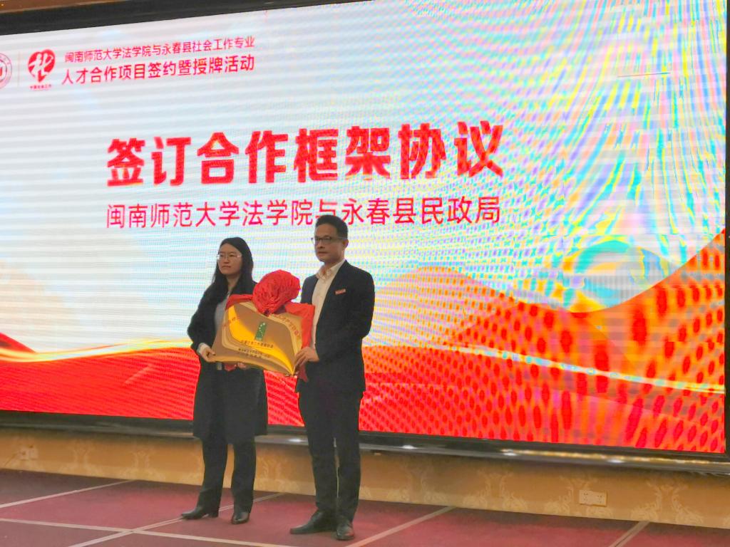 12月18日上午,公司经理何东平、副经理黄耀明等一行5人到永春县与永春县民政局就共建“社会工作专业人才产学研基地”进行授牌并签订合作协议。