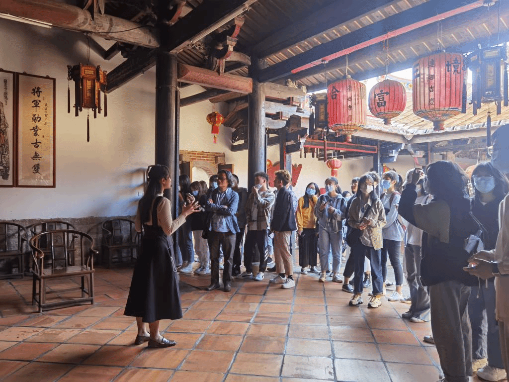 埭美古村位于九龙江南溪河畔、沈海高速公路漳州港出口两公里处,环抱于鸡笼山、大帽山、峨山之中。古村四面绕水,古榕遍地。是龙海市现存最大、保存最完整的古民居建筑群,素有“闽南第一村”的美誉。通过聆听讲解员的生动介绍,观看珍藏于埭美村内图文并茂的事迹记载、实物陈列,公司师生切身体验到此村庄设计的巧妙之处,感受到村落中闽南文化的浓郁氛围,也使员工们在潜移默化中得到了精神的熏陶,树立了了解传统、尊重传统、继承传统、弘扬传统文化的思想观念。