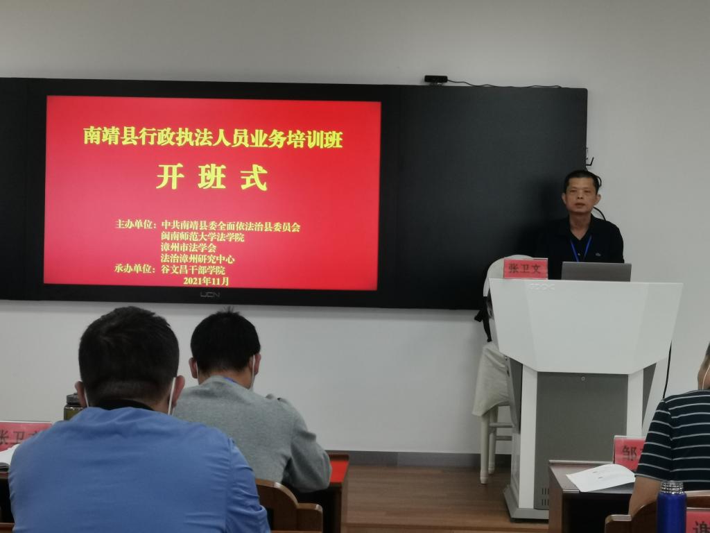 11月17-19日,由中共南靖县委全面依法治县委员会,PA视讯官网,漳州市法学会,法治漳州研究中心主办,谷文昌干部公司承办的南靖县执法人员业务培训在谷文昌干部公司举行,南靖县各乡镇执法人员参加了此次培训。