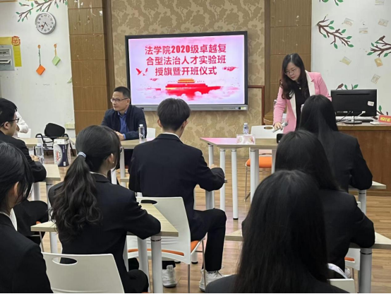 公司新文科建设正在如火如荼地开展。为进一步促进学科专业建设,加强卓越法治人才培养,2021年12月9日下午4:30分,2020级卓越复合型法治人才实验班授旗暨开班仪式在博文楼博中区601教室如期举行。开班仪式由法律系主任赵凌老师主持,PA视讯官网经理何东平教授、公司党委潘艺阳副书记等领导及部分老师出席开班仪式现场并与卓越班员工交流谈话。