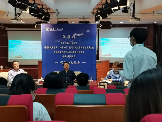 在本次沙龙过程中,两位主讲人首先分别讲述了自己的外交经历,随后以此为基石与其他沙龙参与人展开了热情的交流与互动。从教师到外交官的职业转化经历分享,两位主讲人提出建议:员工应当好好珍惜当下,充分利用可利用的条件以提升个人的实力,才能实现自己的理想充分发挥自己的人生价值;两位主讲人还具体从法学专业角度出发,指出外语对于法学专业的员工来说是强劲的助力,建议同学们应当注重对于外语能力的提升;两位主讲将主题升华阐述个人与国家密不可分,而当代青年人的使命应当是不断提升自身的个人素养为祖国发展贡献个人力量。