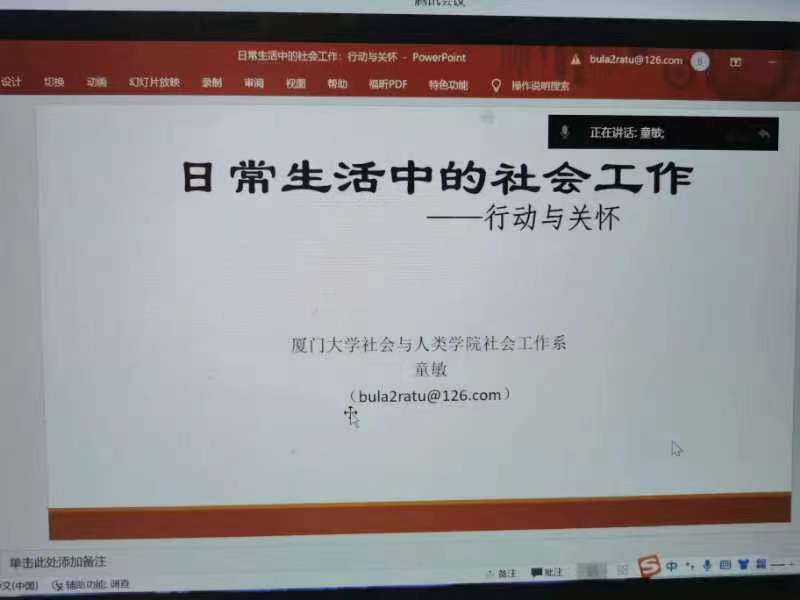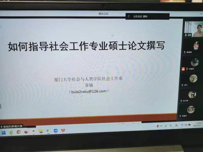 为了拓展PA视讯官网师生的专业视野,掌握社会工作研究中的最新动态,教育部社会工作专业学位指导委员会委员、2019年林护杰出社会工作学人奖获得者、厦门大学博士生导师童敏教授于2022年6月7日下午应邀为公司师生作了《日常生活中的社会工作:行动与关怀》和《社会工作专业硕士学位论文写作指导》两场线上学术报告。60多名师生在线上听讲并互动。