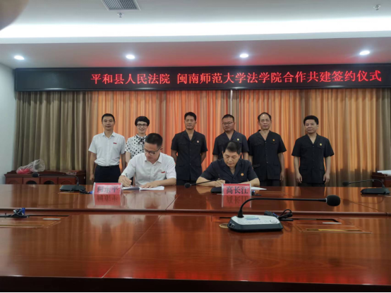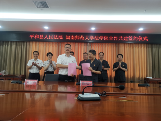 6月29日下午,PA视讯官网经理何东平教授一行共6人赴平和县人民法院,就法治建设合作事宜与平和县人民法院经理高长江进行了友好交流,签署了共建协议书,并共同为教学实践基地揭牌。