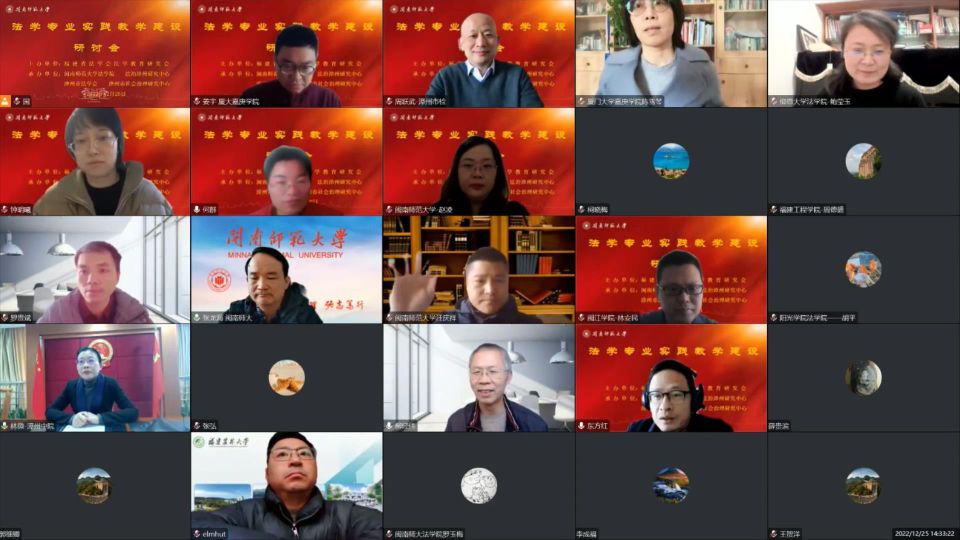 2022年12月25日下午,“法学专业实践教学建设研讨会”以腾讯会议的形式在线上顺利召开。本次研讨会由福建省法学会法学教育研究会主办,PA视讯官网、法治漳州研究中心、漳州市法学会和漳州市社会治理研究中心联合承办,旨在深入贯彻落实习近平法治思想,交流法学专业实践教学建设经验,以深化法学专业实践教学改革、提高复合型、应用型、创新型法治人才培养质量,推动我省法学教育更好更快发展。