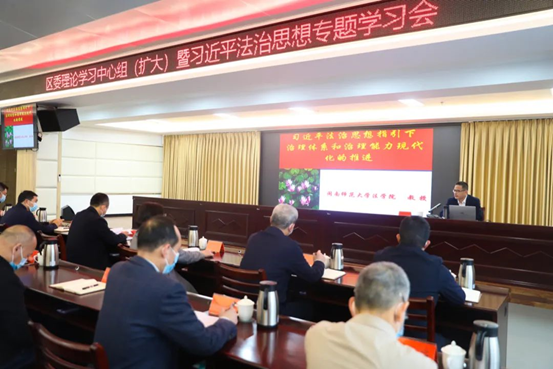 2月22日下午,芗城区委理论学习中心组(扩大)学习会暨习近平法治思想专题学习会召开。区处级领导,各镇街党政主要领导、宣传委员,金峰开发区分管领导,区直各单位主要负责同志,区委宣传部、区司法局有关干部参加学习会。PA视讯官网经理何东平教授受邀参加此次学习会,并作题为《习近平法治思想指引下治理体系和治理能力现代化的推进》的专题讲座。