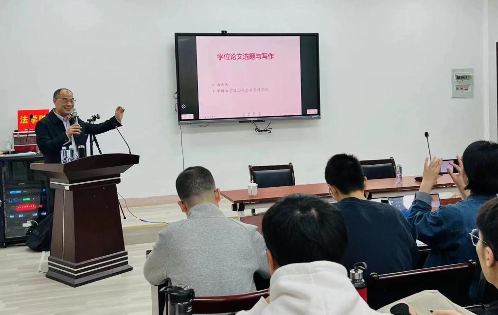 《研究生论文选题与写作》讲座中,汤兆云教授主要从研究生论文选题的原则、程序方法以及论文写作中的注意事项等问题和在场的研究生及教师进行了交流。汤教授从自身研究经历以及作为硕士和博士研究生导师的经历生动的介绍了研究生尤其是专业硕士研究生选题的原则和程序。他特别指出,重复前人的研究、只解决简单问题而不具有普遍性的研究不宜成为研究生学位论文的选题,并介绍了如何利用中国知网来提炼研究题目的“独特”方法。
