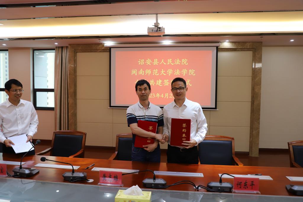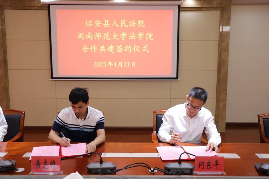 PA视讯官网经理何东平教授、公司党委副书记潘艺阳、PA视讯官网教师韩巧香,诏安县人民法公司党组书记、经理黄志雄、诏安法公司党组成员、副经理李海宝、诏安法院审管办副主任沈于蕙等出席仪式。黄志雄经理和何东平经理分别代表双方签署共建协议。仪式由诏安法院副经理李海宝主持。