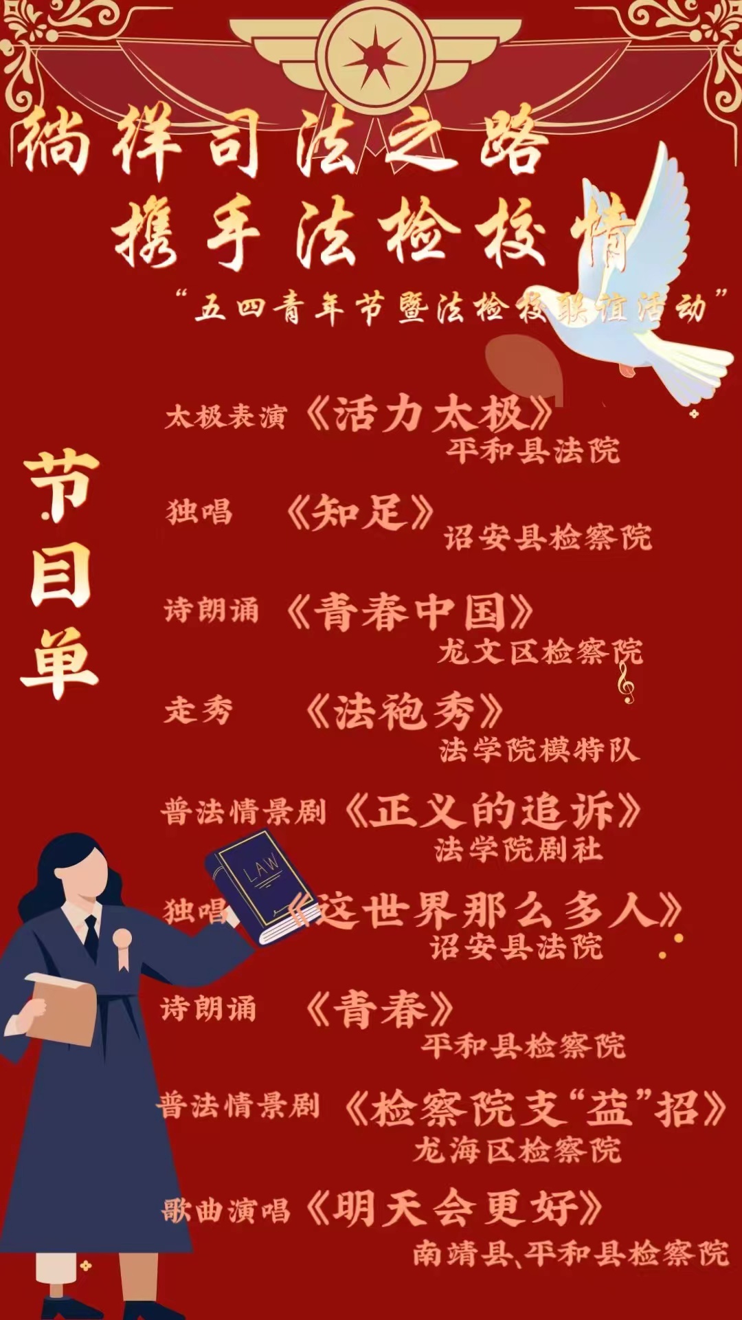 第三个节目由龙文区检察院带来朗诵节目《青春中国》,愿“五四”精神如高擎的火炬,传承着也激励着一代又一代的青年人,成长为民族的希望与脊梁。
