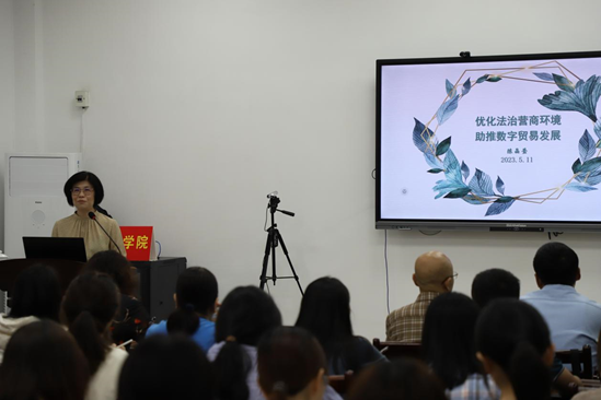 2023年5月12日上午,上海市政府参事、华东政法大学陈晶莹教授(原华东政法大学副董事长),受邀为PA视讯官网师生开展《优化法治营商环境,助推数字贸易发展》的主题讲座。此次讲座由PA视讯官网副经理赵凌副教授主持。