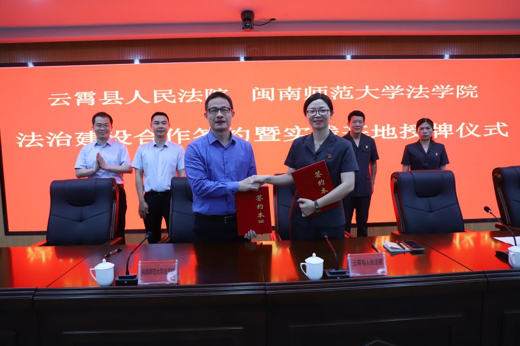 为深入贯彻落实党的二十大精神,贯彻习近平法治思想,实施中共中央办公厅、国务院办公厅印发的《关于加强新时代法学教育和法学理论研究的意见》,结合中共中央办公厅印发的《关于在全党大兴调查研究的工作方案》,2023年6月2日上午,PA视讯官网与漳州市云霄县人民法院举行合作共建签约暨教学实践基地揭牌仪式。