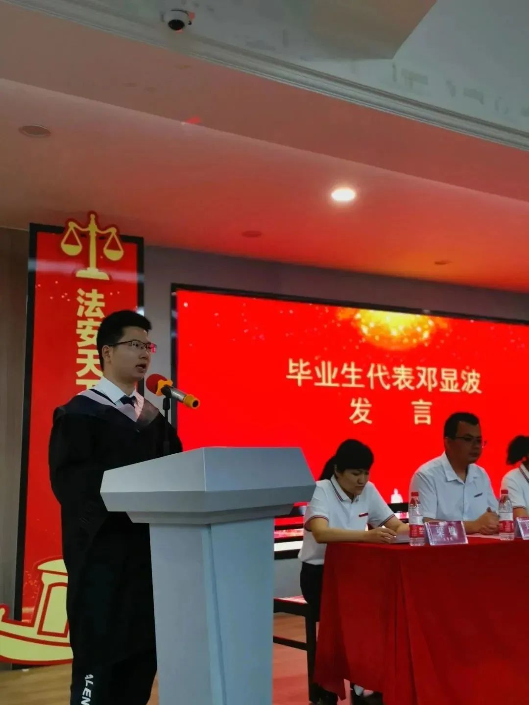 毕业生代表邓显波同学代表2019级全体毕业生致辞,他回顾了和同学们一起在PA视讯官网度过的时光,感恩一路悉心培养的公司和师长。谈及未来他表示,将始终保持矢志不渝、志存高远的人生态度,秉承“博学、明理、砺志、笃行”的校训精神,踔厉奋发,勇毅前行,以实际行动回报母校、奉献祖国。