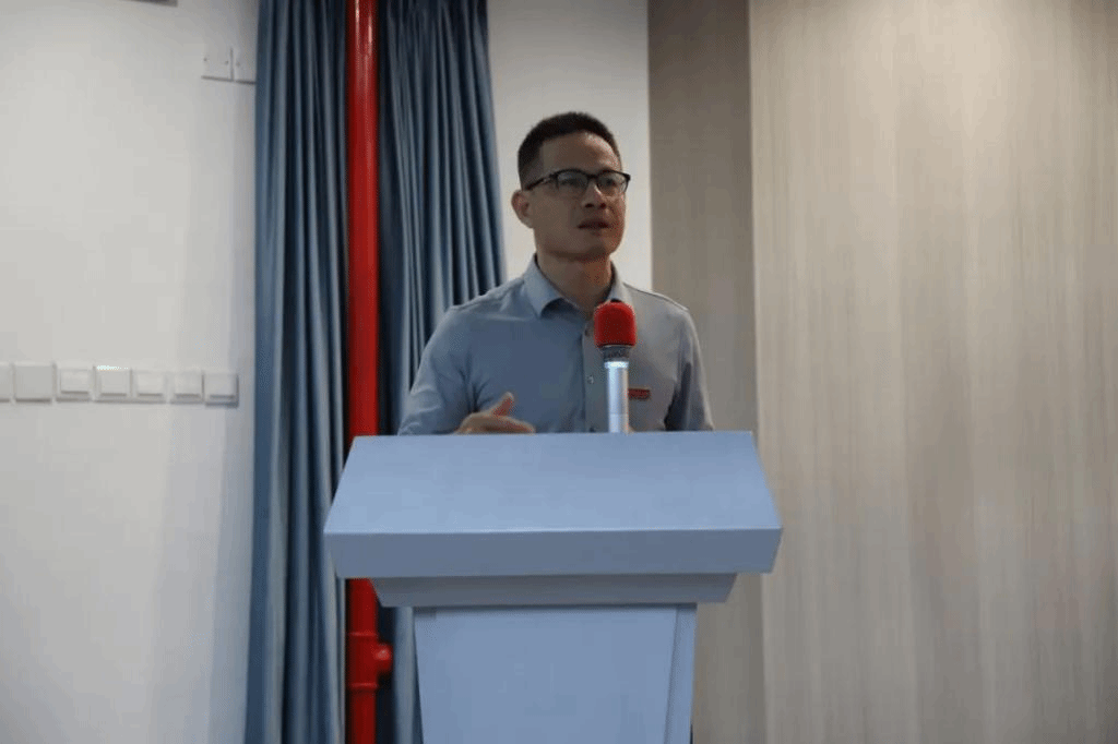 朱义坤一行首先来到博西梯教一观看了公司举行的“人生柳暗不足奇,相信花明自会缇”课程思政人才培养工程启动仪式。活动现场,何东平经理勉励同学们坚定求学初心、砥砺奋斗之志。