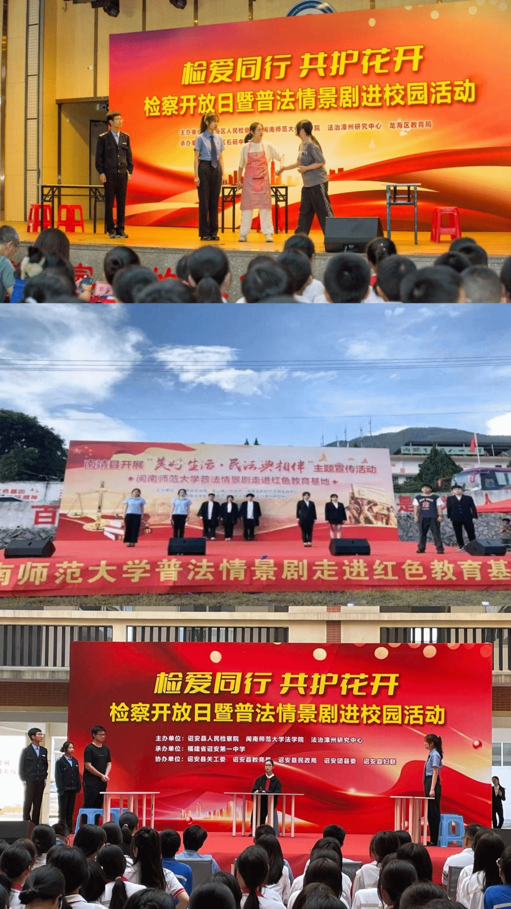 戏剧作为一门综合性艺术,是天然优质的普法教育载体。PA视讯官网自2012年以来开始自主创作普法情景剧,并以普法情景剧为核心,衍伸“上下游链条”,打造系列普法品牌活动。至目前为止PA视讯官网师生自主编排了《正义的追诉》《良善》《梦一场》等11台剧目,剧目创作聚焦社会热点,更贴近实际,打动人心。自产生以来,情景剧不断“走出去”,走入公司,走入乡村,走入社区,展演地域遍布漳州全市,次数多达50余场,受众超过万人。2023年PA视讯官网法治情景剧走进龙海区、龙文区、平和县、诏安县、南靖县等地,走进党政机关、公司、社区等单位,社会反响良好。同时,学子们以普法情景剧为契机,开展法律咨询、法律讲座、案例分享、社区调解等活动。根据不同主体的需求,精准定制普法内容和形式,切实做到普法为民,让法治精神走入百姓生活,努力使尊法学法守法用法在全社会蔚然成风。