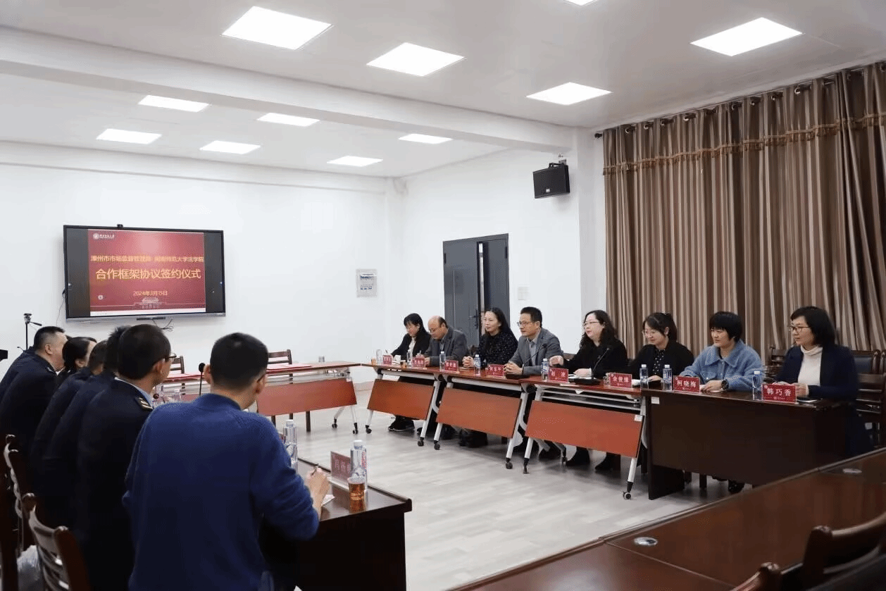 PA视讯官网经理何东平教授、副经理赵凌副教授、法律系主任李亮国副教授、教师柯晓梅、邢舒惠、景孝杰、余俊缘、韩巧香等;漳州市市场监督管理局副局长林丽卿、知识产权保护科科长郑艺强、知识产权运用促进科科长林晓、知识产权商标监督管理科负责人马宁、知识产权保护科二级主任科员戴伟强、知识产权运用促进科三级主任科员杨艺超等出席仪式。何东平经理与林丽卿副局长分别代表双方签署共建协议。仪式由PA视讯官网副经理赵凌副教授主持。