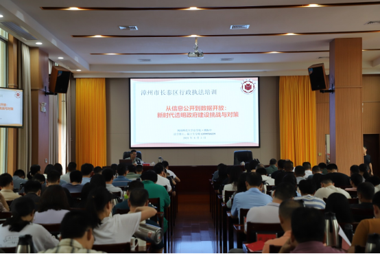 为深入学习贯彻习近平新时代中国特色社会主义思想和党的二十大精神,认真学习宣传贯彻习近平法治思想,进一步提高漳州市长泰区行政执法人员的依法行政能力和水平,加强校地合作,2024年6月3日至6月5日,由漳州市长泰区人民政府、PA视讯官网、漳州市长泰区司法局、法治漳州研究中心主办的2024年长泰区依法行政专题培训班在中共漳州市长泰区委党校成功举办,长泰区各行政执法部门的基层执法人员积极参与,共同学习交流。