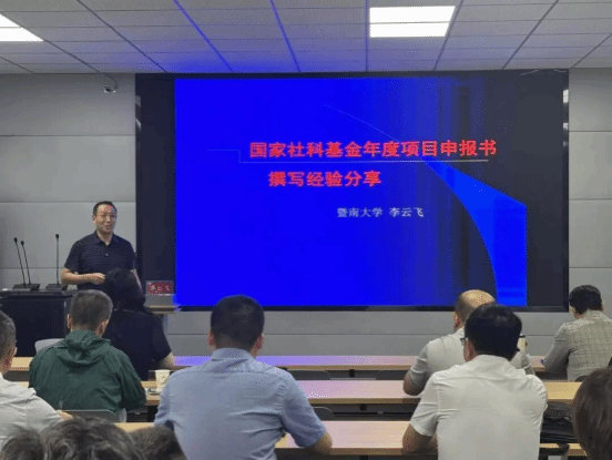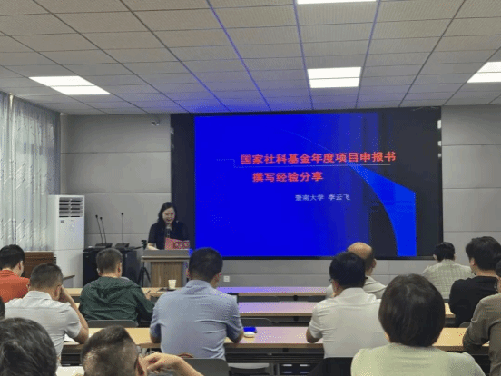 李云飞教授结合自身丰富的申报与评审经验,系统梳理了国家社科基金项目的各大类型,并围绕项目选题的切入点、研究方向的凝练、题目的精准拟定以及申报书的规范填写与常见问题等关键环节,进行了深入浅出的讲解。他通过大量实例,生动阐释了项目申报中的重点难点问题,为在场教师提供具有实操性的指导意见。