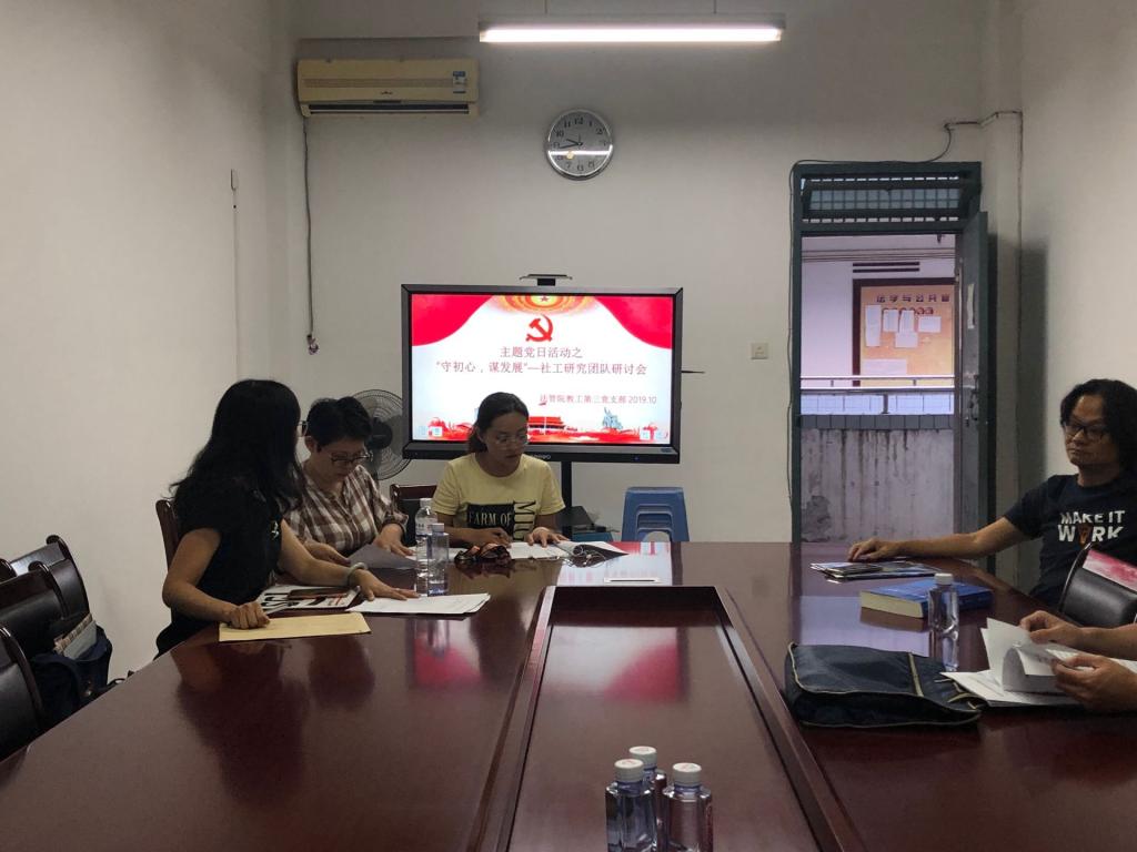 10月14日,法管院教工第三党支部开展“守初心,谋发展”主题党日活动,围绕“牢记为民宗旨,以师生为中心破解发展难题,办好人民满意教育”专题深入调研和探讨。支部结合学习习总书记《坚持以人民为中心,把群众观点和群众路线深深根植于思想中、具体落实到行动上》的文章,交流学习心得,探讨立德树人、服务公司发展的策略、路径。党员教师们纷纷表示要把牢记为民宗旨与员工成长成才结合起来,创新教学模式,提高教学水平,打造“金课”、淘汰“水课”;提高自身科学研究水平。法管院教工第三党支部是以公司社会工作服务与研究团队为单位建立的,支部发挥先锋引领作用,邀请了社会工作服务与研究团队中的台湾老师共同参与讨论,研讨团队的研究方向、研究内容、活动方式等,为党员群众互帮互助,信息分享,相互促进提供平台和交流机会,从而更能凝聚团队合力,群策群力为公司发展做出更大贡献。